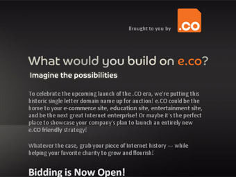 Выставлено на продажу доменное имя, состоящее из одной буквы - e.co, пишет The Register. Выручка от продажи домена пойдет на благотворительные цели.