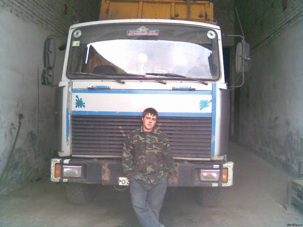 Водитель МАЗа должен посмотреть по сторонам, убедиться что нет другого МАЗа и продолжать движение.